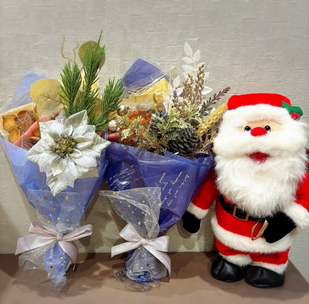 「季節の花束ギフト💐」 出来てます! クリスマスをイメージした花束ギフト🎁 ケーキにちょっと添えてもい...